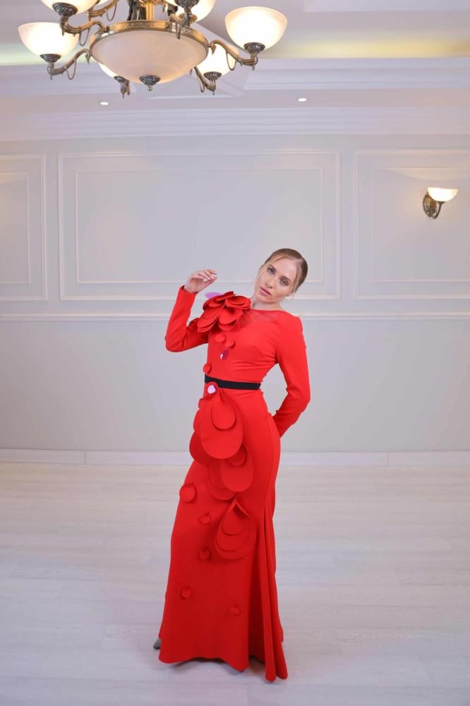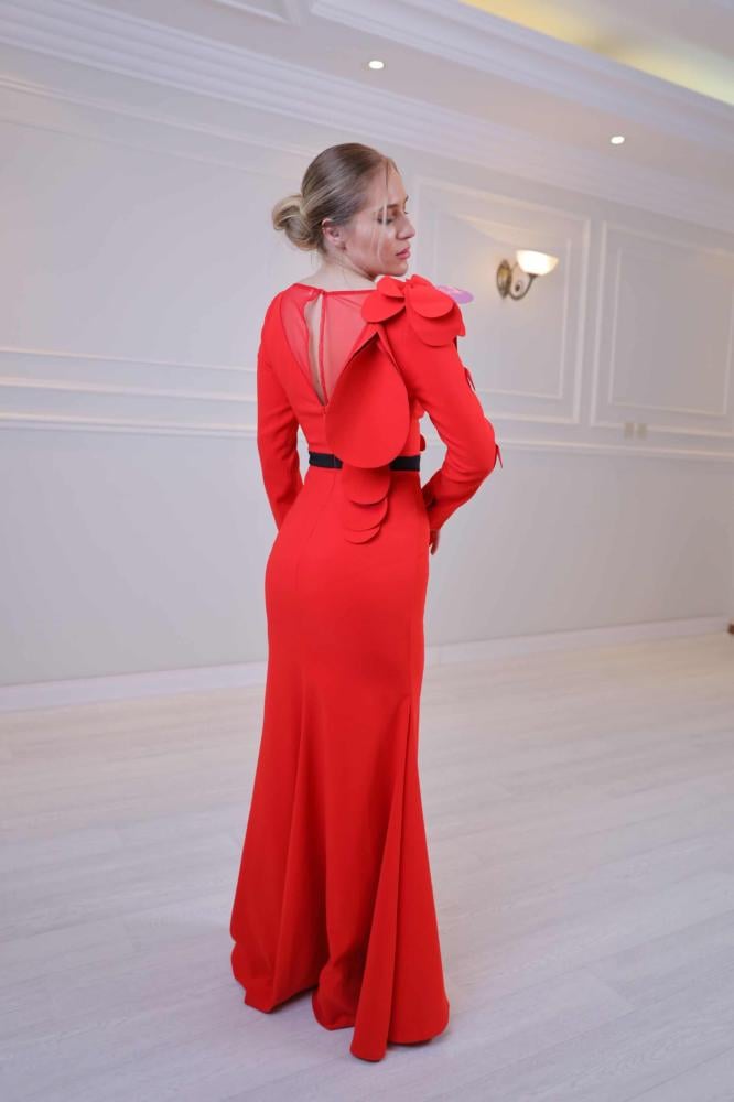 تألقي بإطلالة فنية جريئة تنطق بالتميز مع فستان سهرة باللون الأحمر الصارخ من مودا بيلا بوتيك.